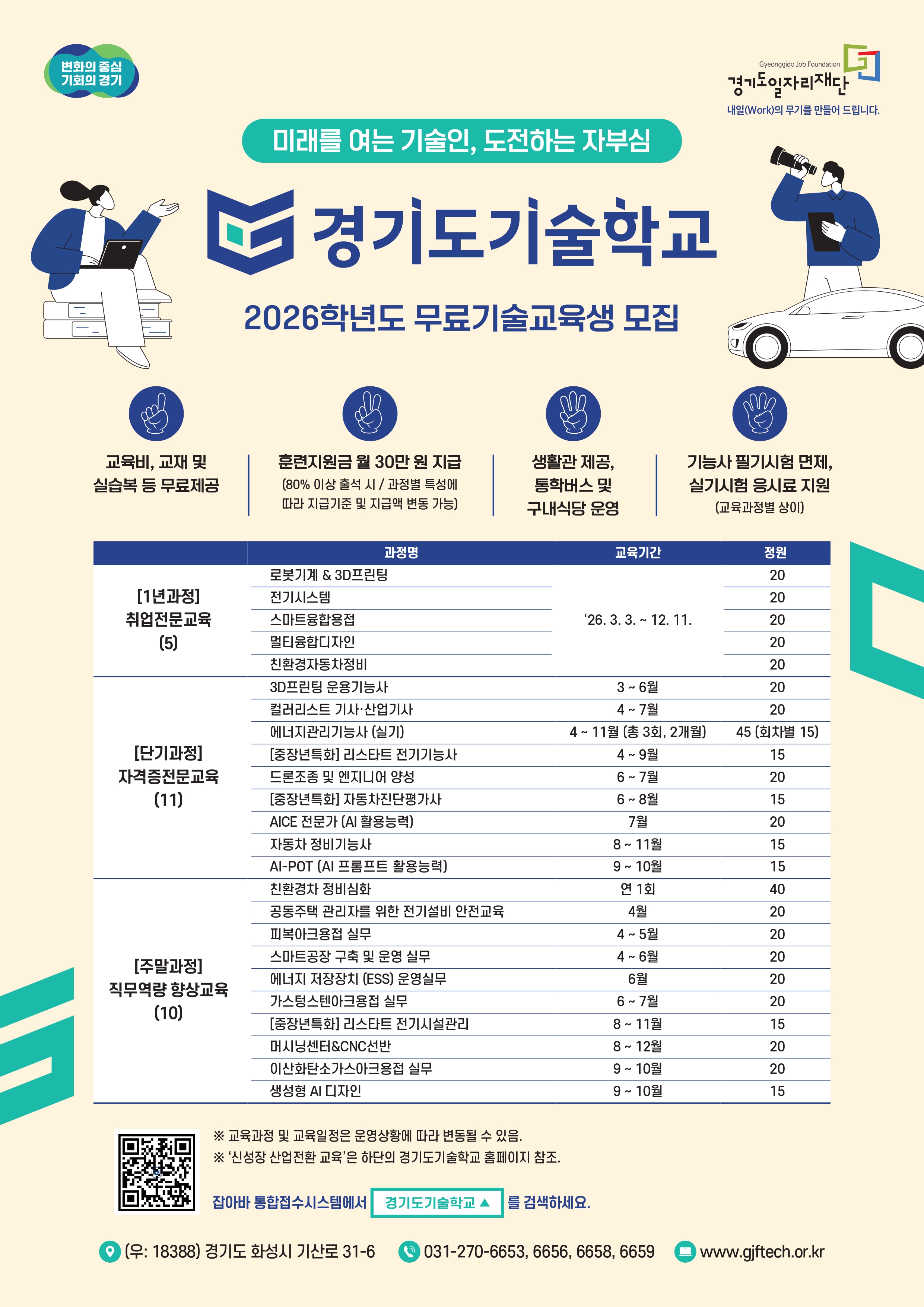 경기도기술학교 취업전문교육 훈련생 모집 안내